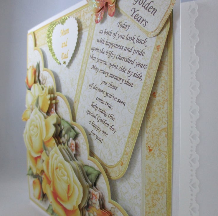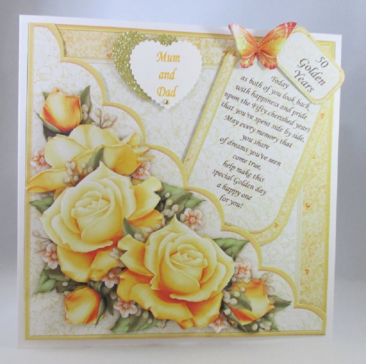 I have made this card for a Mum and Dad and a golden anniversary.Please let me know what you would like on your card at checkout or email me with details