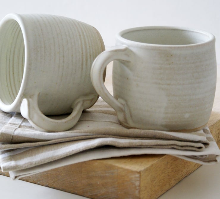 The set is glazed simply in a cream colour which has a satin finish to the touch. The Little Wren Pottery stamp is printed on the bottom of each mug marking these out as unique handmade item.