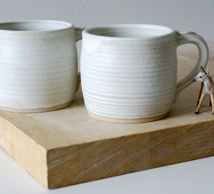 Two wheel thrown ceramic mugs in vanilla cream. Handmade Stoneware Pottery by littlewrenpottery on Folksy.