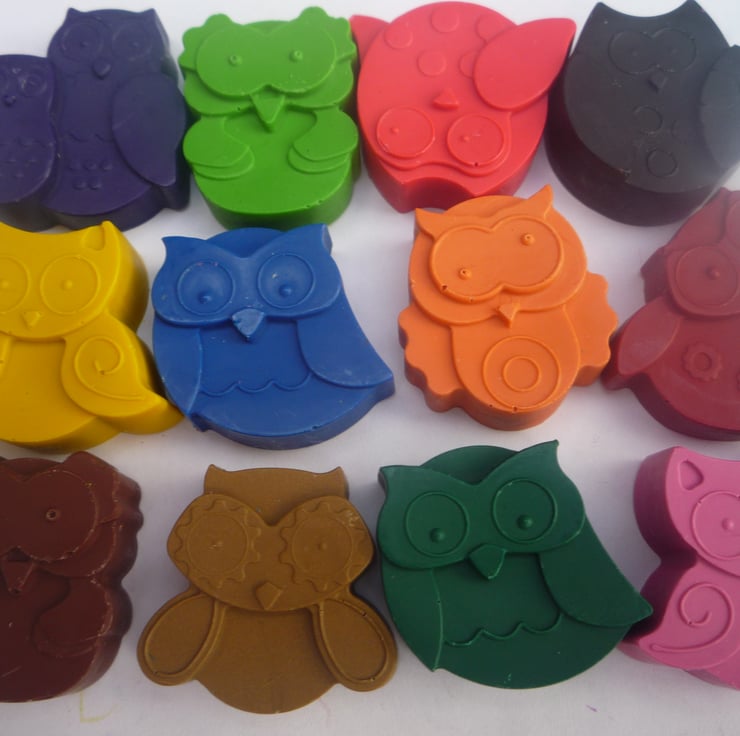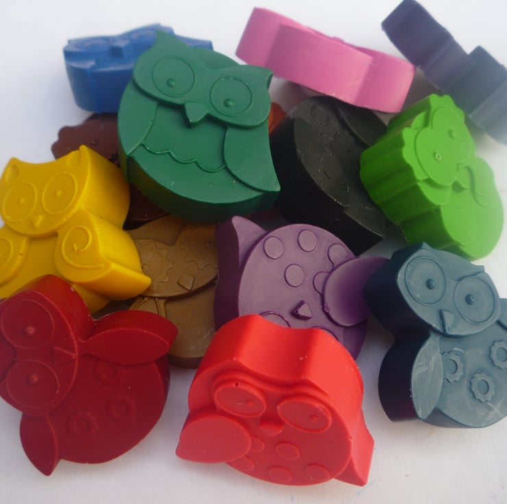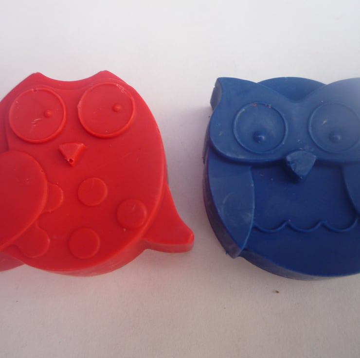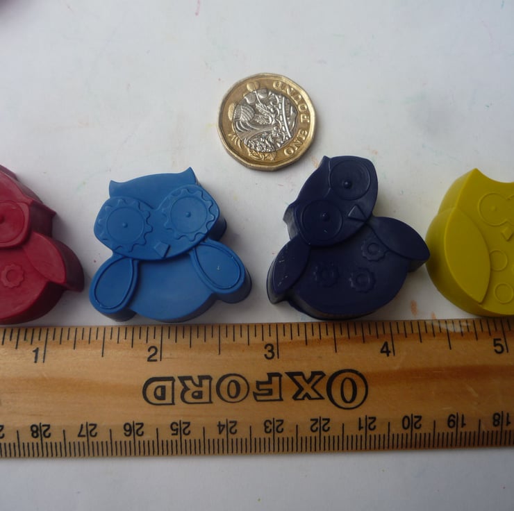 cute owl shaped novelty wax crayons, 8 crayons in assorted colours, picked at random.
