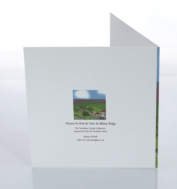 Featuring Blakey Hill, one of the big hills on the Tour de Yorkshire 2016 route and the gorgeous village of Hutton-le-Hole this greeting card measures 15cm square, comes with a white envelope and is cellophane wrapped.