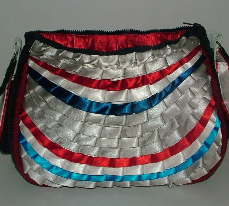 This unique handbag highlights the fantastic qualities found in satin ribbon and took about 12 hours to make.