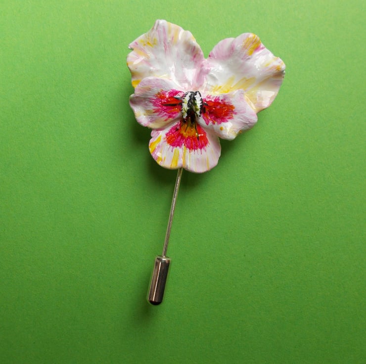 PINK PANSY PIN Viola 3D Clay Remembrance Lapel Flower Pin HANDMADE HANDPAINTED