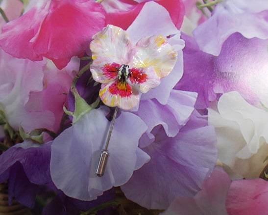You are looking at a variation of one, of my more unusual Designs,. A symbol of "Remembrance"- The PINK PANSY STICK PIN- Lapel Flower Brooch