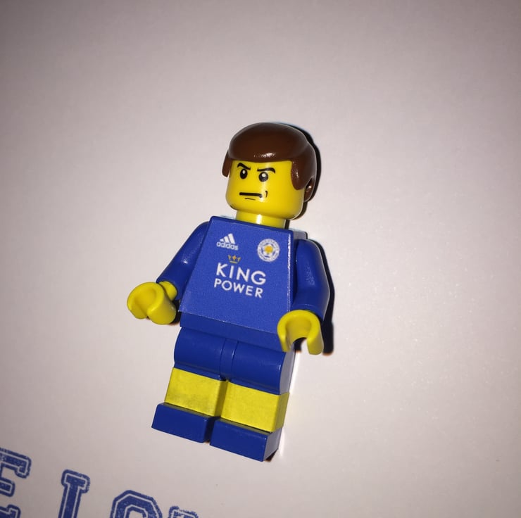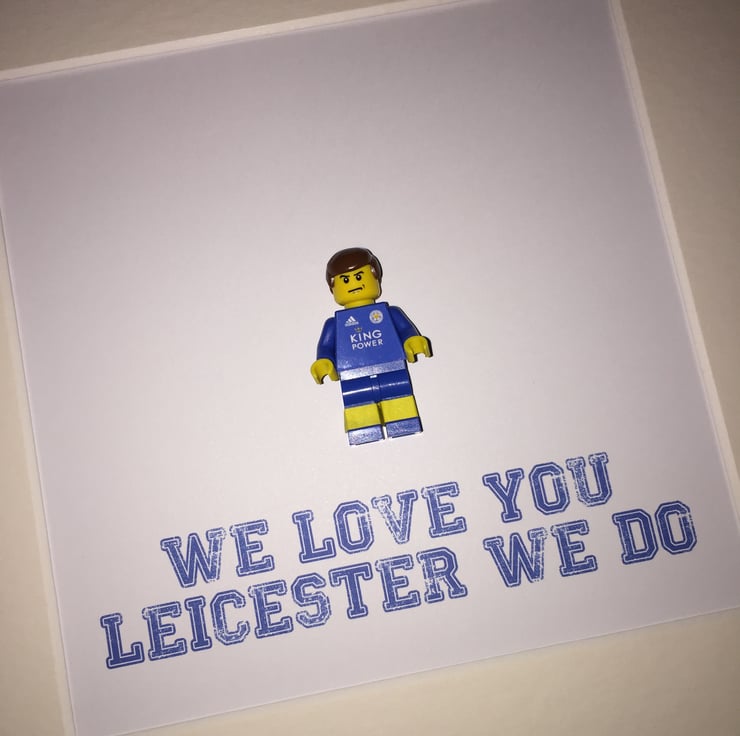 Our little mini footballers look great, and are a fab way to show your love for a particular team. This particular item is our tribute to Leicester City Football Club. This little guy is wearing the latest strip and his torso has been created with a custom sticker front. Under the minifigure we have printed the classic words "We love you Leicester we do" to make a truly unique and awesome piece of art work.