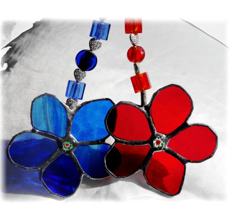 The 5th photo shows this red flower drop with the blue one I also have for sale here on Folksy as a separate listing..