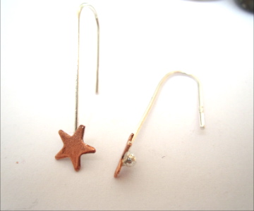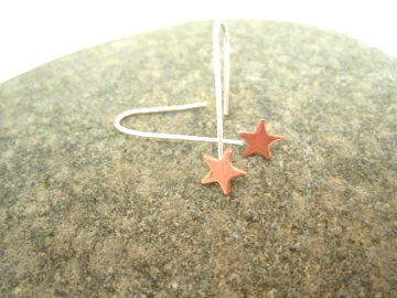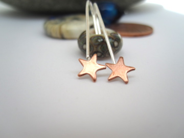 Little Silver star earrings with a warm Copper star drop. Small enough for everyday, sweet enough for special days. Very light & comfortable to wear.