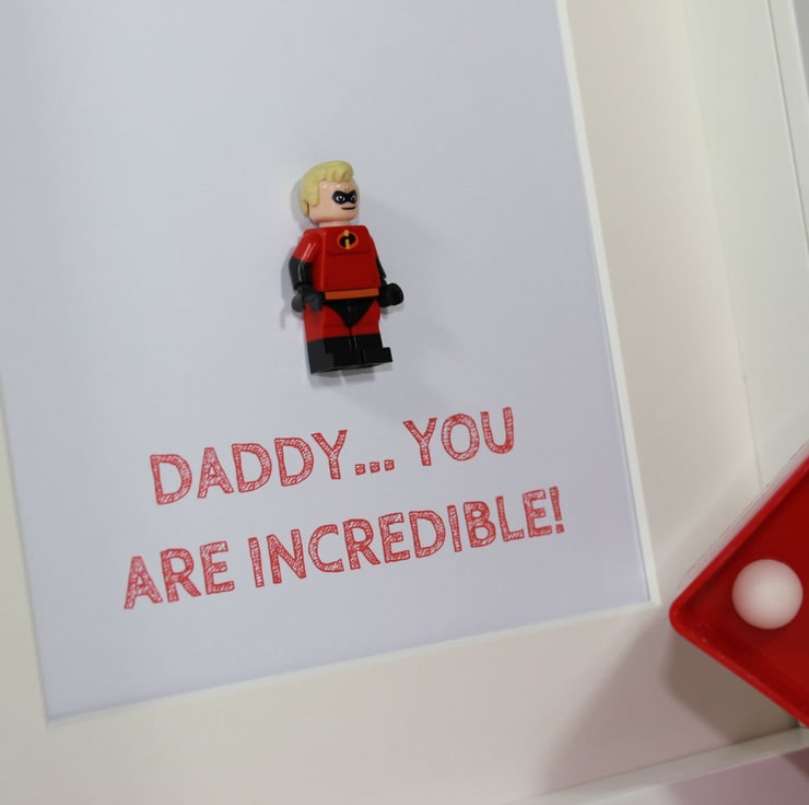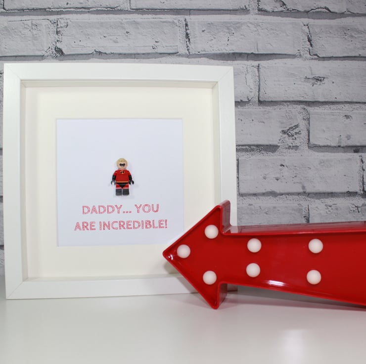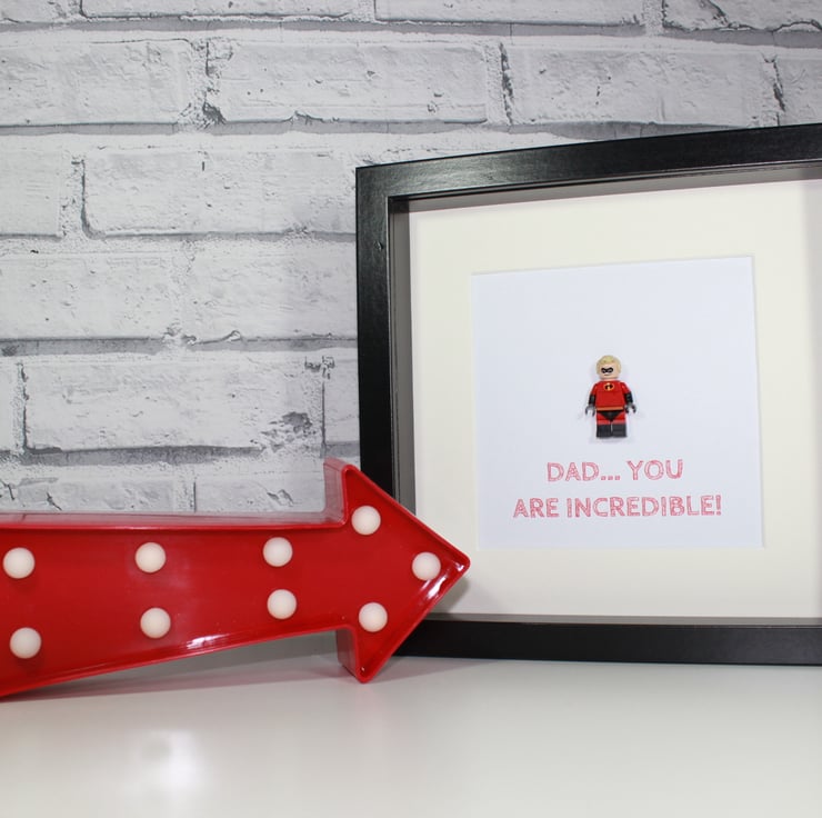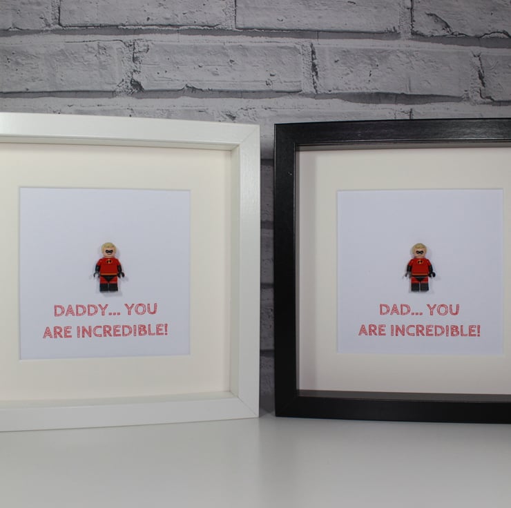 This deep box frame features an original Lego minifigure of Mr Incredible and we are putting you in complete control of the finished product! You can choose between:
