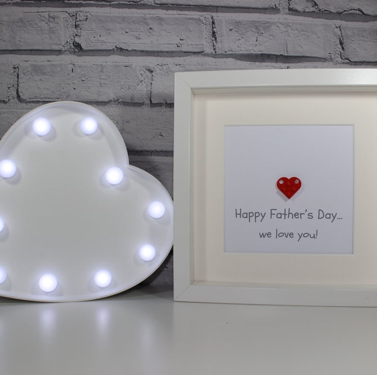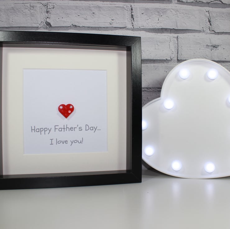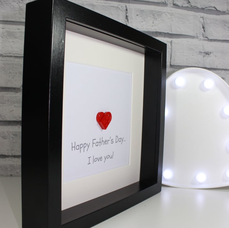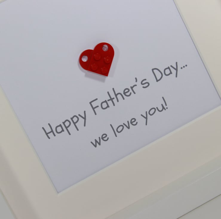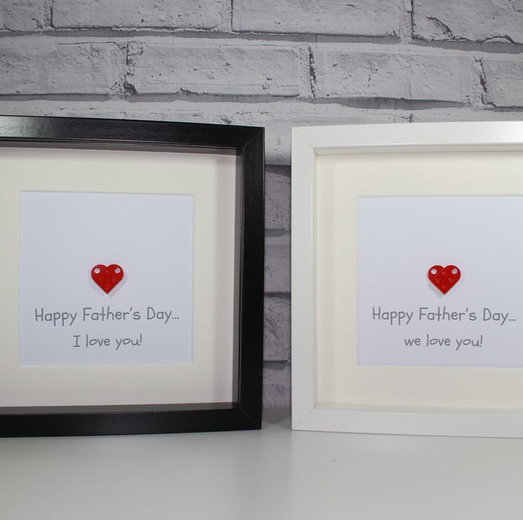 This deep box frame features red heart made using original Lego pieces. It comes complete with the wording "Happy Father's Day We / I love you." and we are putting you in complete control of the finished product! You can choose between: