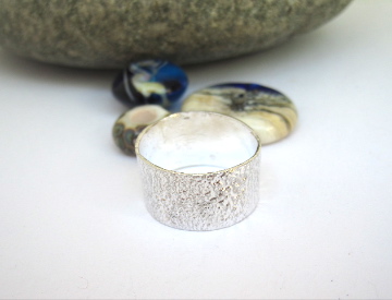 Reticulated silver made with fire, then hand cut and polished to a soft sheen this ring has texture and a subtle random pattern.