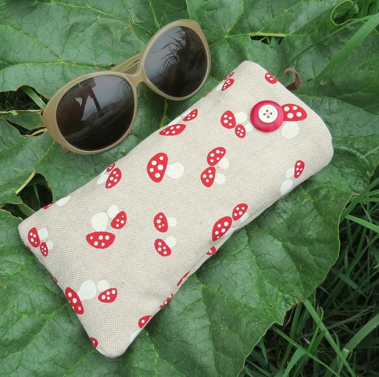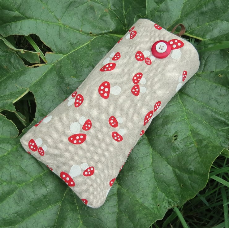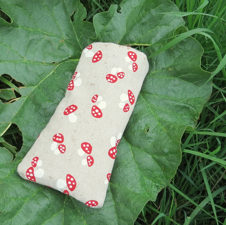 The fabric used is a linen look cotton with a whimsical toadstool design.