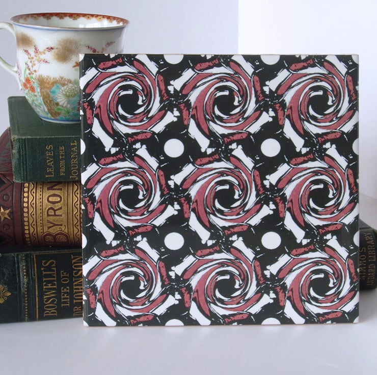 Graphic Polka Dot Design Ceramic Tile Trivet with Cork Backing - THIRD OFF ORIGINAL PRICE
