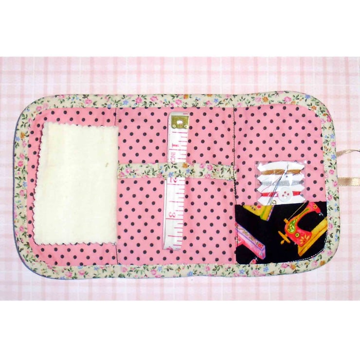 I saw someone using a similar sewing set, and decided to design my own set. It is ideal to take to a sewing workshop, or for a household sewing/repair kit or also to use when travelling, as more items could be put into the pocket or loops.