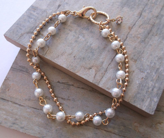 A pretty gold plate and glass pearl bracelet, approx 7.7 inches in length. Free gift box tied with ribbon. I do offer discount on multiple orders so please ask. Limited edition where only 6 were made. Last one left.