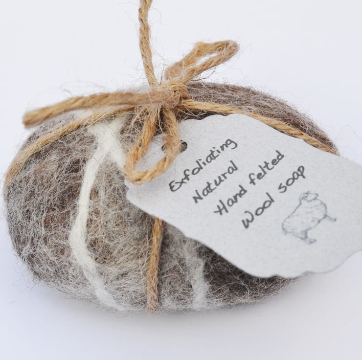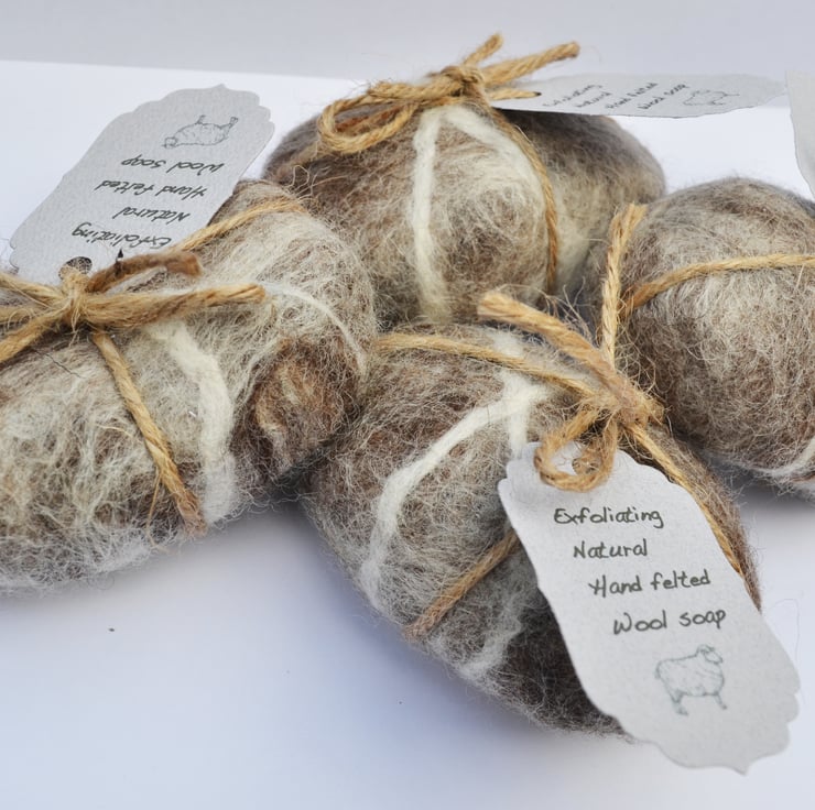 Felted Soap is an exquisite gift for yourself or to give to someone else. There is no need for a washcloth or a loofah, just take your new felted soap into the tub or shower and it gently exfoliates your skin. As you use soap suds come through and the wool will continue to felt (shrink) around the bar of soap until you are left with a little scrubby, perfect for use during cleaning.