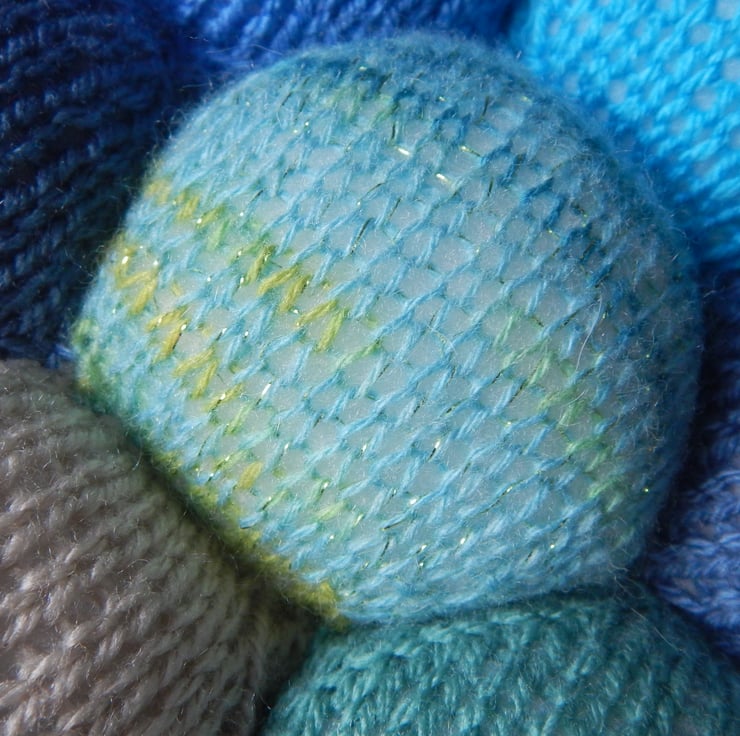 Little pads of gorgeousness knitted and stuffed and sewn together in a patchwork fashion. These cushions make ideal dining chair seat pads as they're not too fatly stuffed! They look equally as beautiful on garden chairs in the sunshine.
