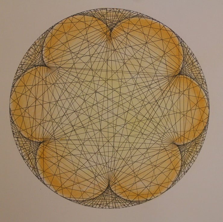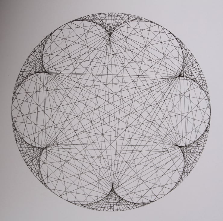 I love mathematical art and the patterns you can make with number sequences. This is just one of a series of experiments I have been making with multiplication circles.