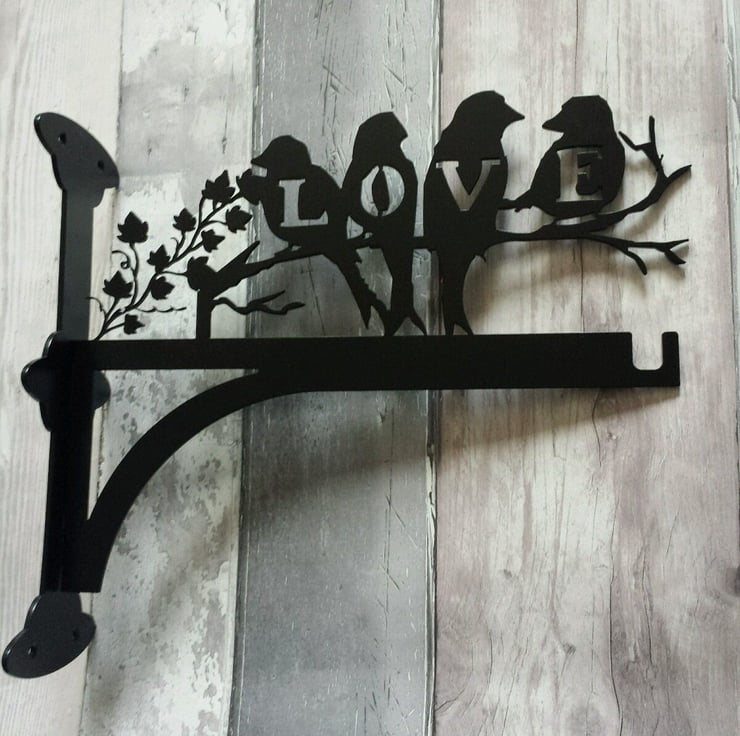 Part of our stunning new range of hanging basket brackets, this features four birds sat on a branch with the word "love" cut out.