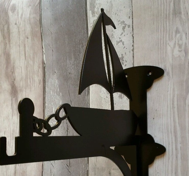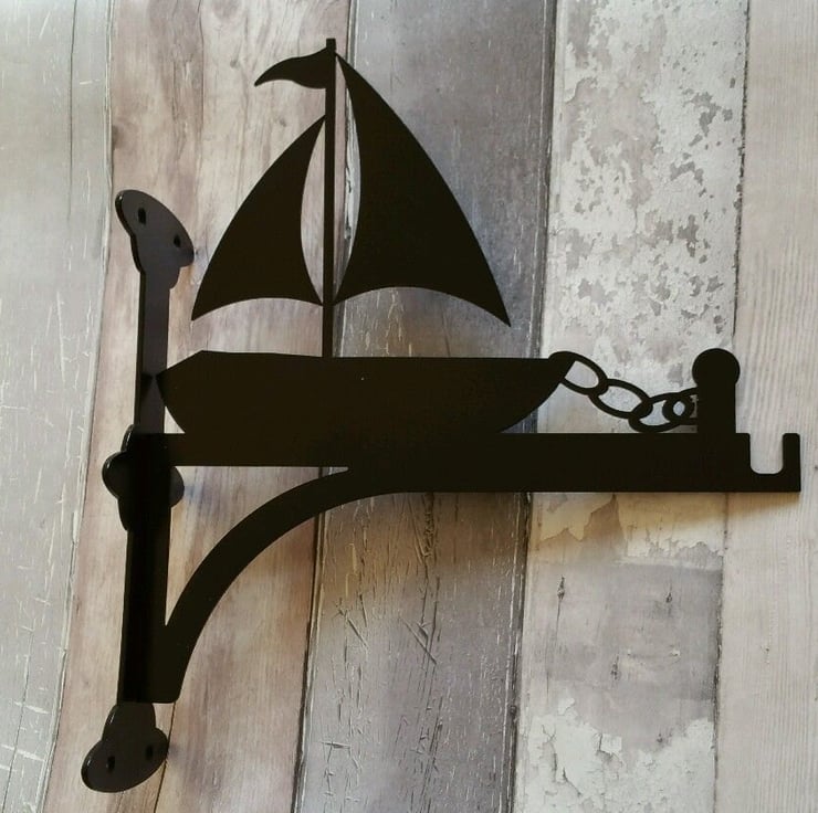 Part of our stunning new range of hanging basket brackets, this features a boat docked with a chain.