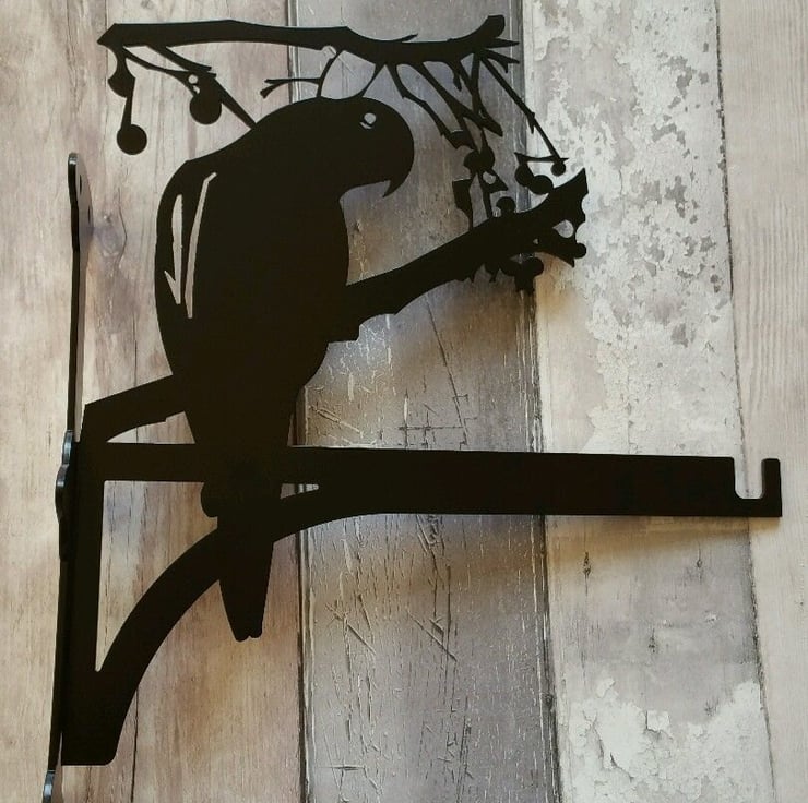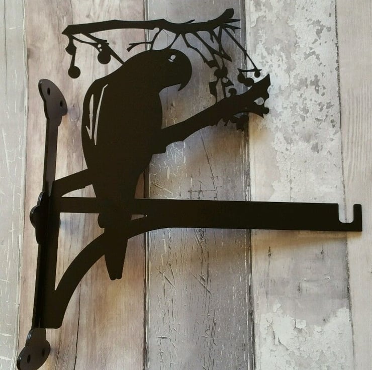 Part of our stunning new range of hanging basket brackets, this features a parrot sitting on a branch.