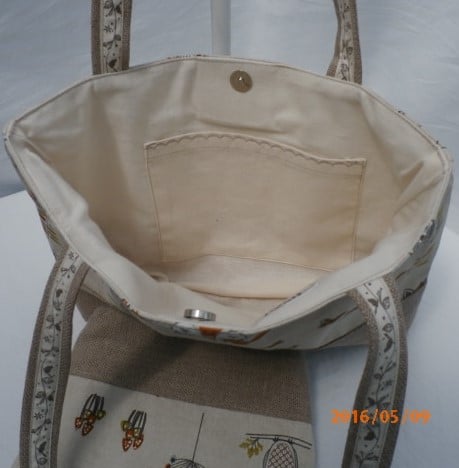 Both bags have been lined in a cream cotton fabric with a patch pocket .