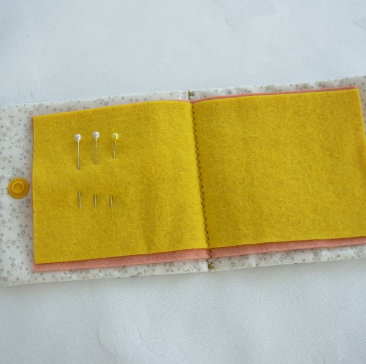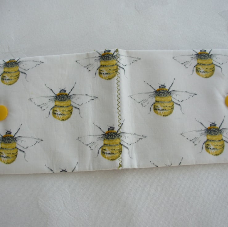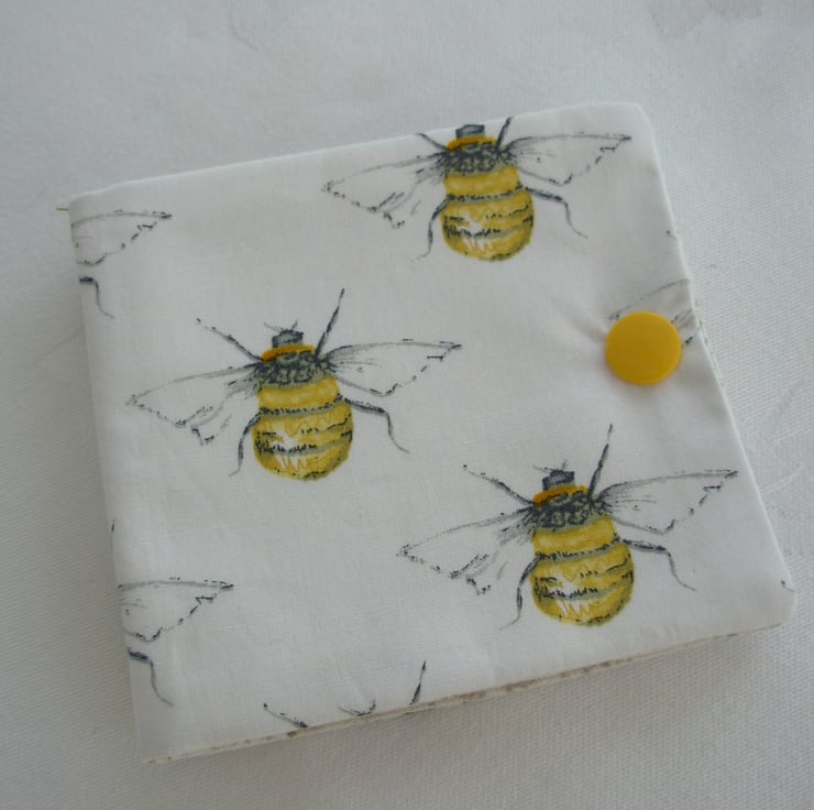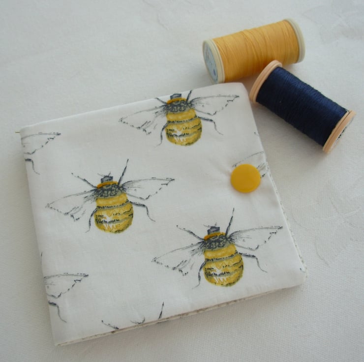 I've made this little sewing needle case in an off white polycotton fabric with bumble bees for the outer fabric and a cream and white inner cotton fabric.