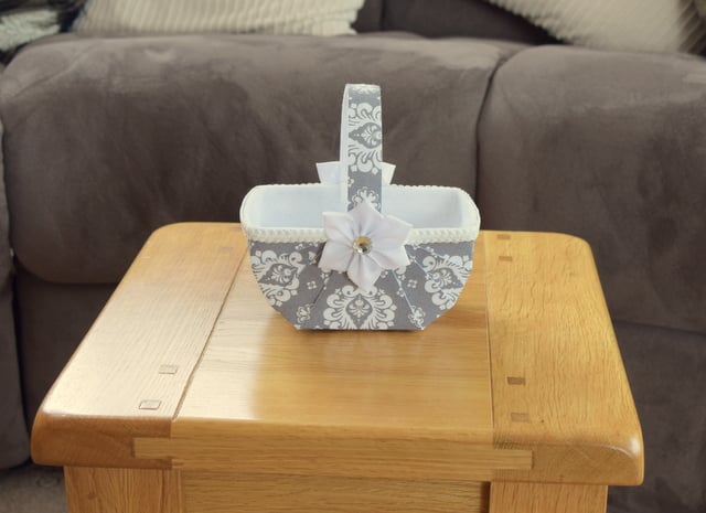 These Handmade fabric Novelty Basket are perfect as a center piece on a coffee table or a dinning table. Ideal for your favourite chocolates, sweets. They will make great favour baskets too on your wedding table decoration. I've used a lovely Grey and White printed cotton fabric for this Novelty Basket. .