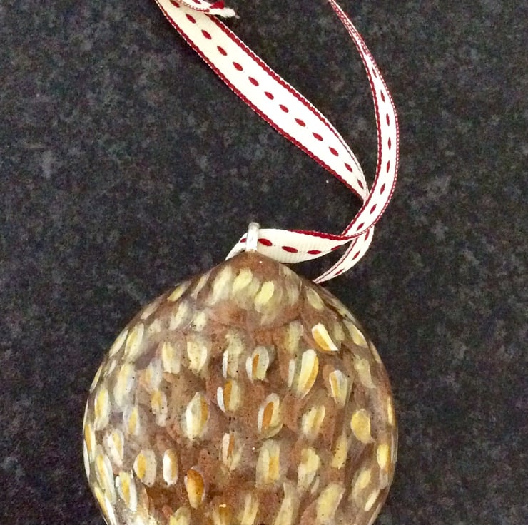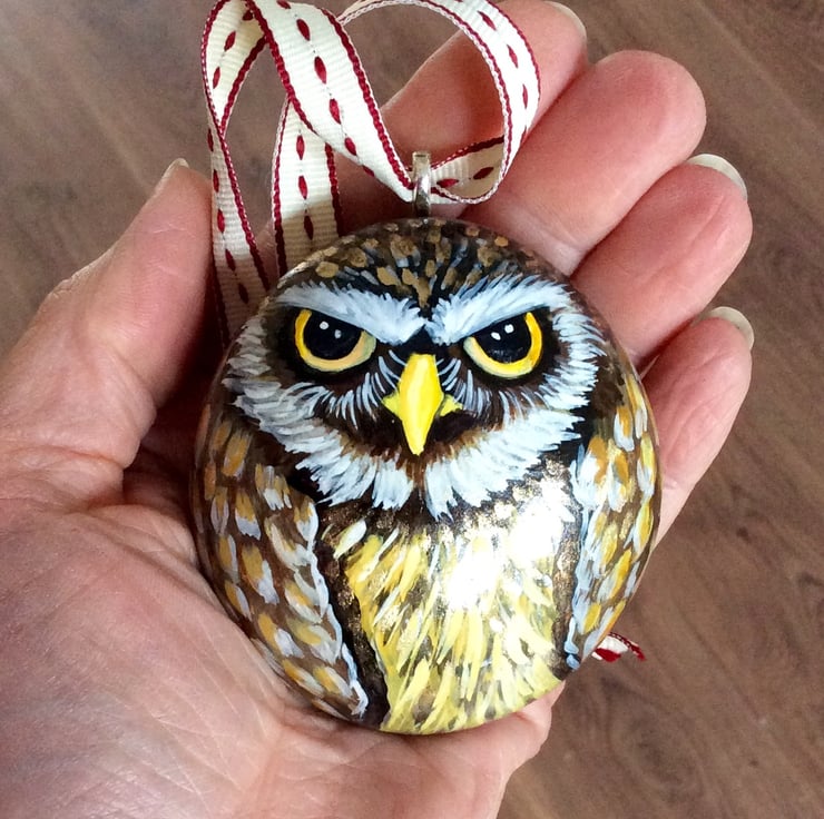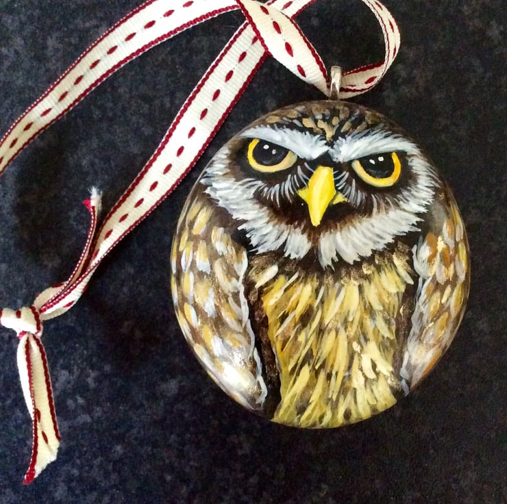 This hanging owl from my range of cobble creatures has been hand painted by myself onto a smooth flat stone. A secure silver fastening at the back allows it to hang nicely. It will be sent second class signed for and postage can be combined with other stones, thanks for looking