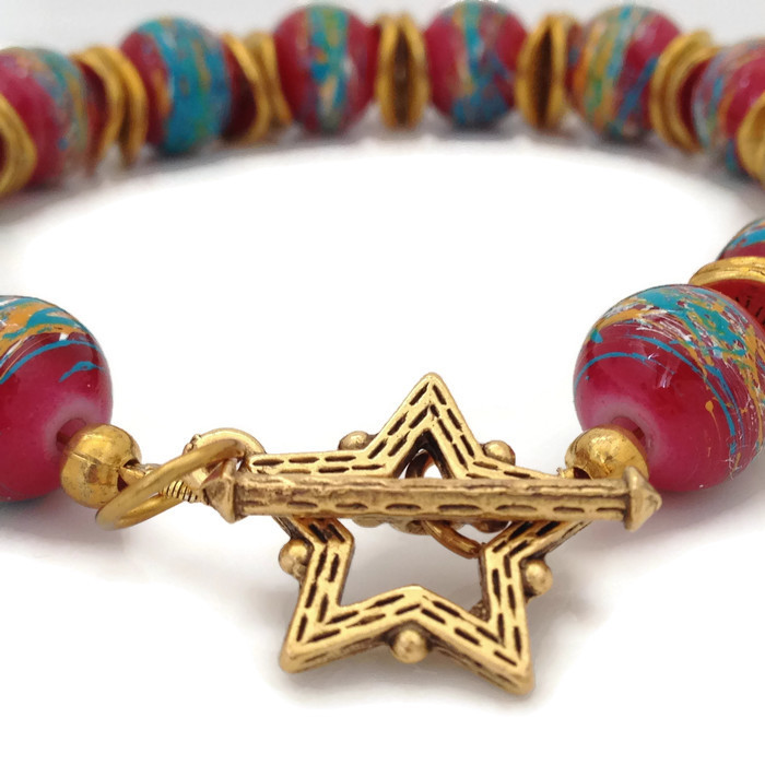 The bracelet is finished with a gold plated star toggle clasp and has an inner circumference of approximately 18.5cm (7 1/4").