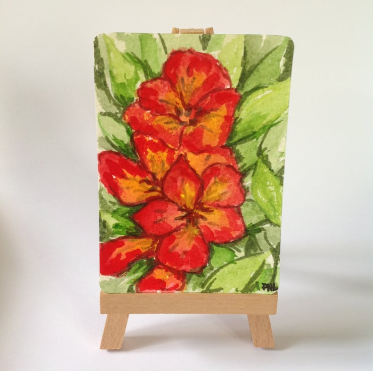 The miniature easel is an example of how the painting could be displayed and is not included in the listing. ACEO paintings look particularly effective when grouped or framed as a theme.