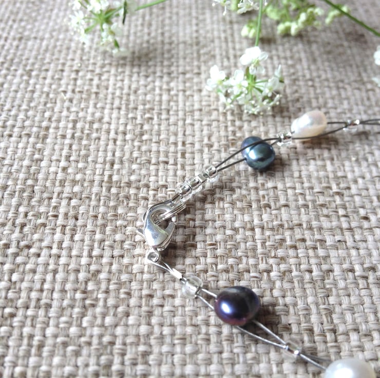 I learnt to weave 'floating jewellery' by copying a favourite necklace I used to wear. They are so pretty and delicate, and work really well with freshwater pearls and a bit of sparkle from Swarovski crystals.