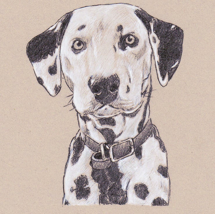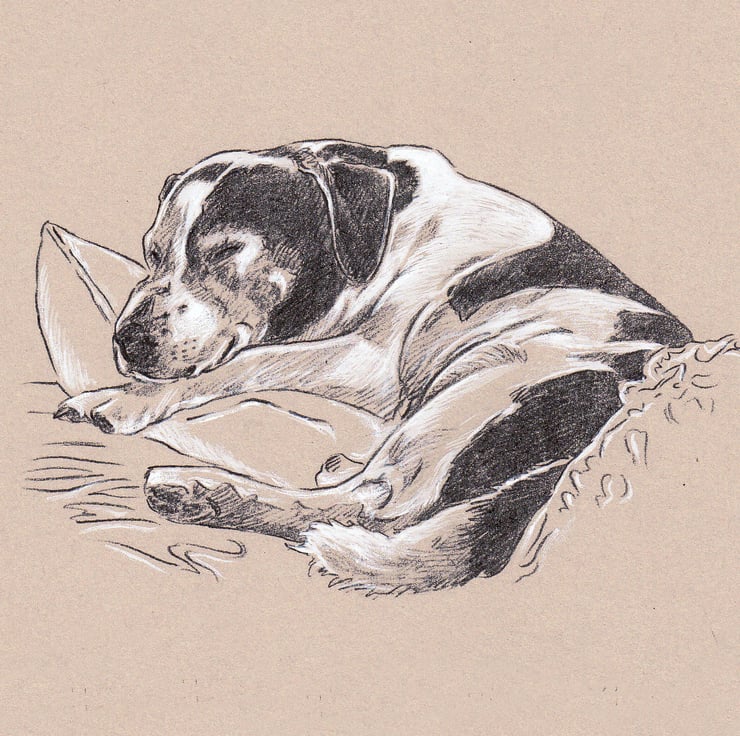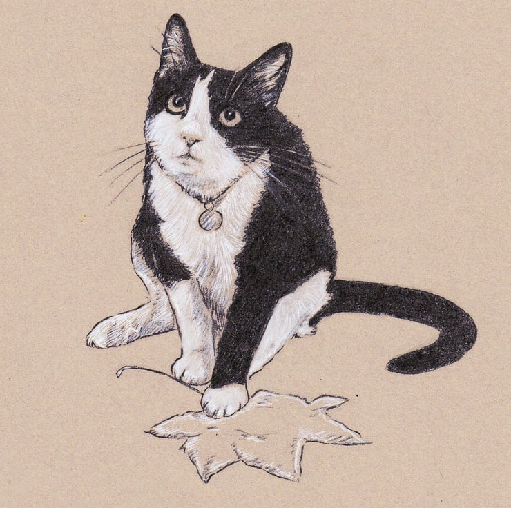 Black and white illustrated portrait of a beloved pet. Printed on quality tonal paper stock with hand painted highlights by a professional artist. Approximate artwork size A4 (image dependant). Please send a clear photograph of your pet or several with preferences.