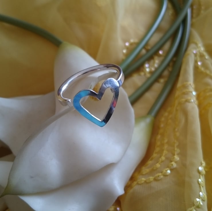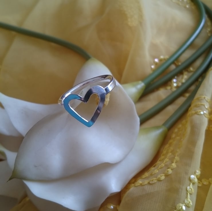 Handmade sterling silver ring with heart. The ring is adjustable so fits most, but please state ring size before ordering. Comes in a gift box.