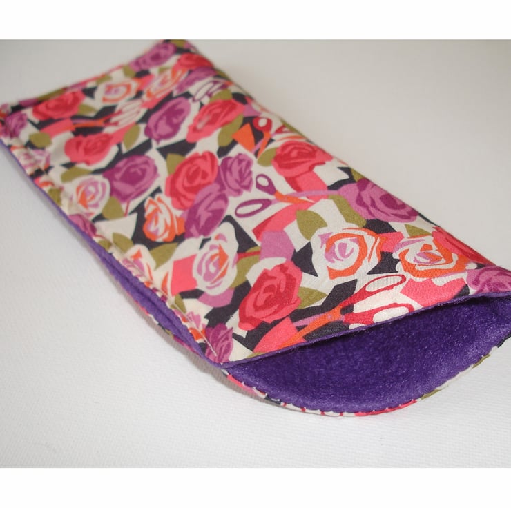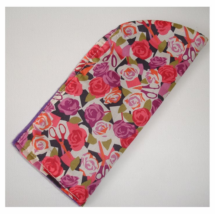 Made using an art deco / nouveau Liberty's Purple and Pink Paper Roses & Scissors Fabric. Lined with soft co-ordinating felt.