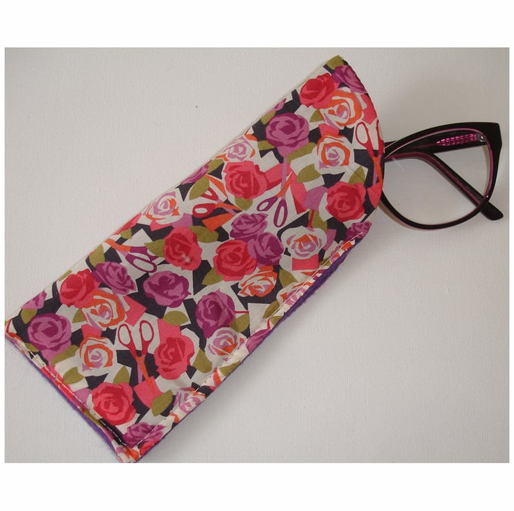 A soft sleeve for your Glasses / Spectacles. Fits a standard pair of glasses as pictured here, or slim over the counter magnifying / magnifier reading glasses - I can custom make one if you have larger glasses or sunglasses. A perfect gift for a reader, sewist, gardener, Mum, Sister, Girlfriend, Grandma or, teacher.