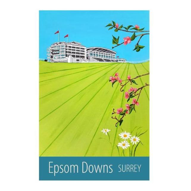 A beautiful A3 print of the racecourse at Epsom Downs, home of The Derby, in a ‘shabby chic’ white frame.