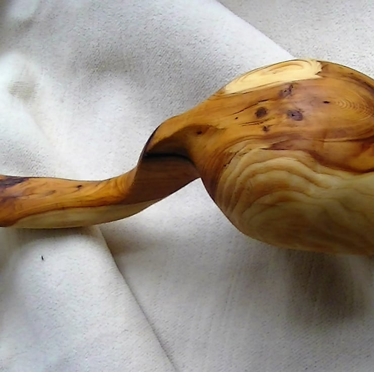 It was a particular challenge to carve through the swirling grain waves on this piece of crab apple wood but the results seem to have made the effort worthwhile.