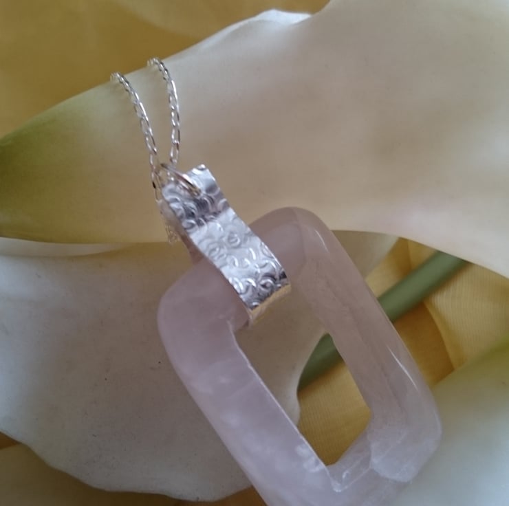 Hand made sterling silver necklace with hammered details. Approx 3cm long. Comes on an 18" chain in a gift box. Other gems available, gems vary by nature. Matching items available .