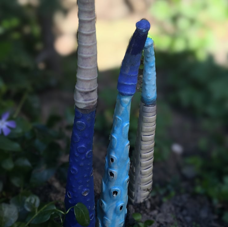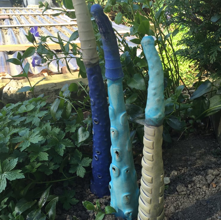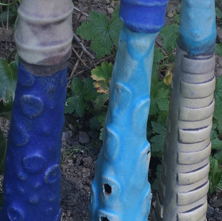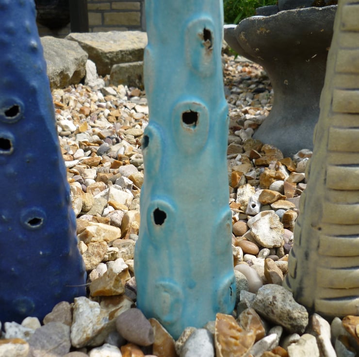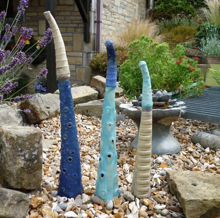 They can be placed inside on your mantle piece or window sill or hidden amongst pretty garden plants and flowers. I would suggest if placing the vessels outside that you support them within the soil to avoid windy weather blowing them over.