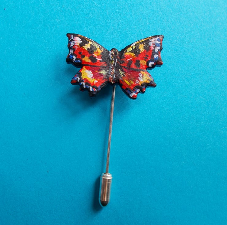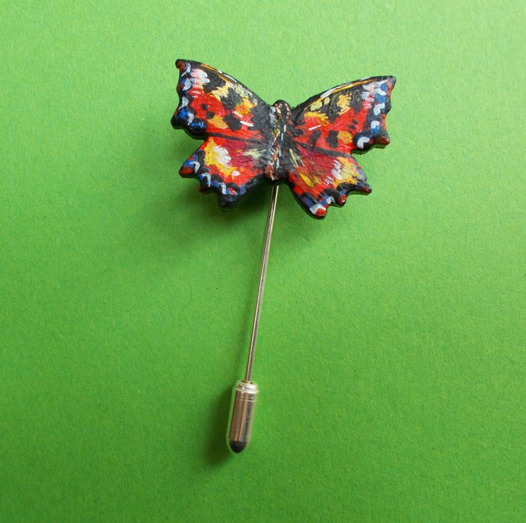 You are looking at a variation of one, of my more unusual Designs- The Delicate RED ADMIRAL STICK PIN, Lapel Brooch