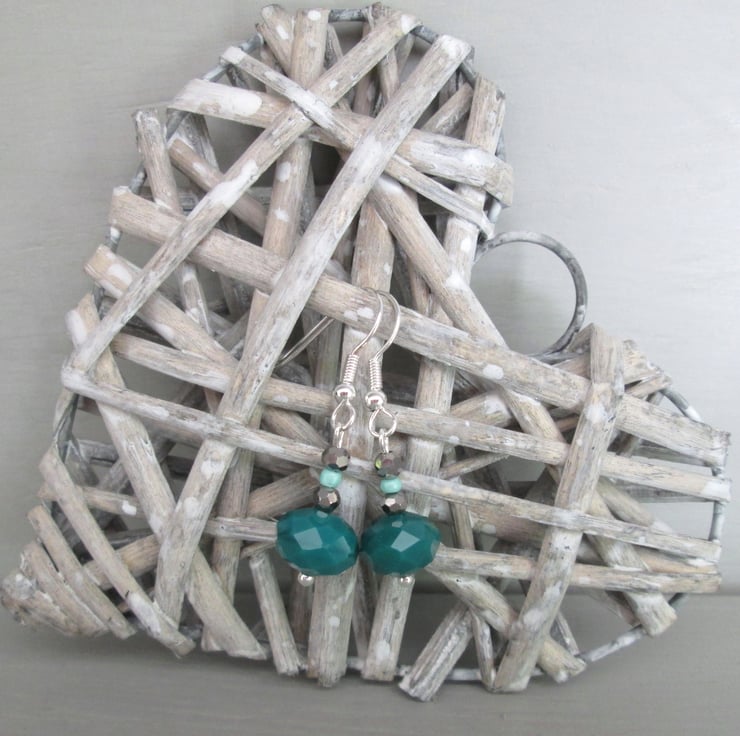 These earrings are made with some lovely faceted beads I came across by accident. I love the colour and the way the facets catch the light - perfect for earrings!