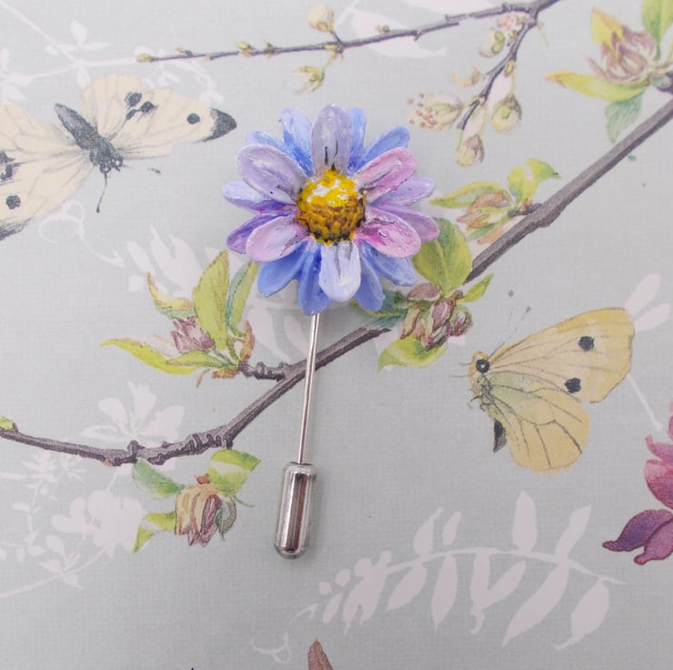 THE FORGET-ME-NOT BLUE DAISY STICK PIN- Lapel Flower Pin.