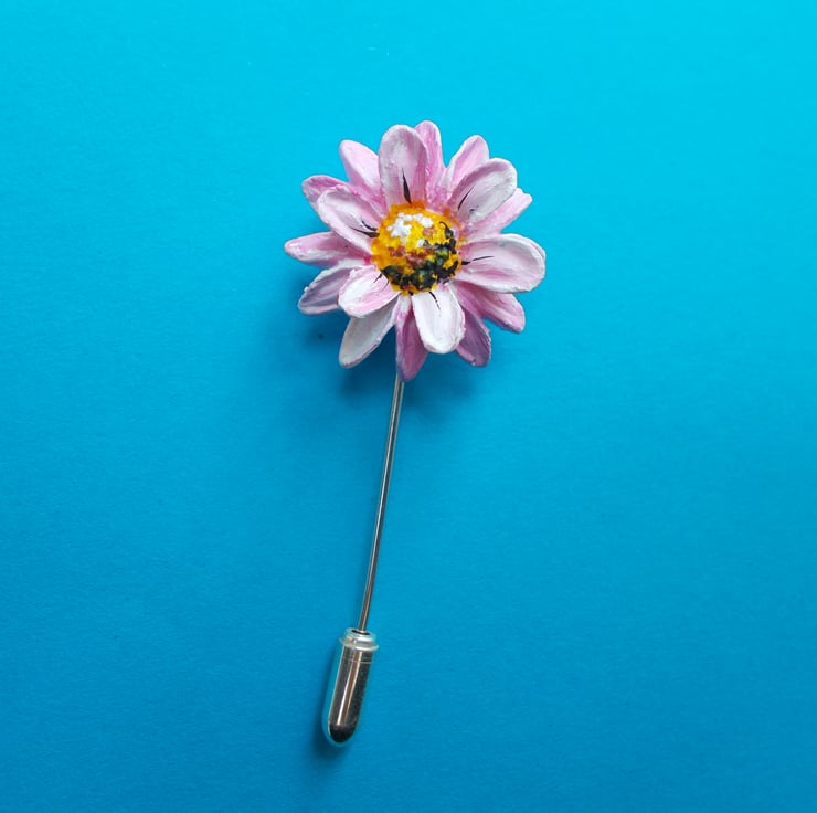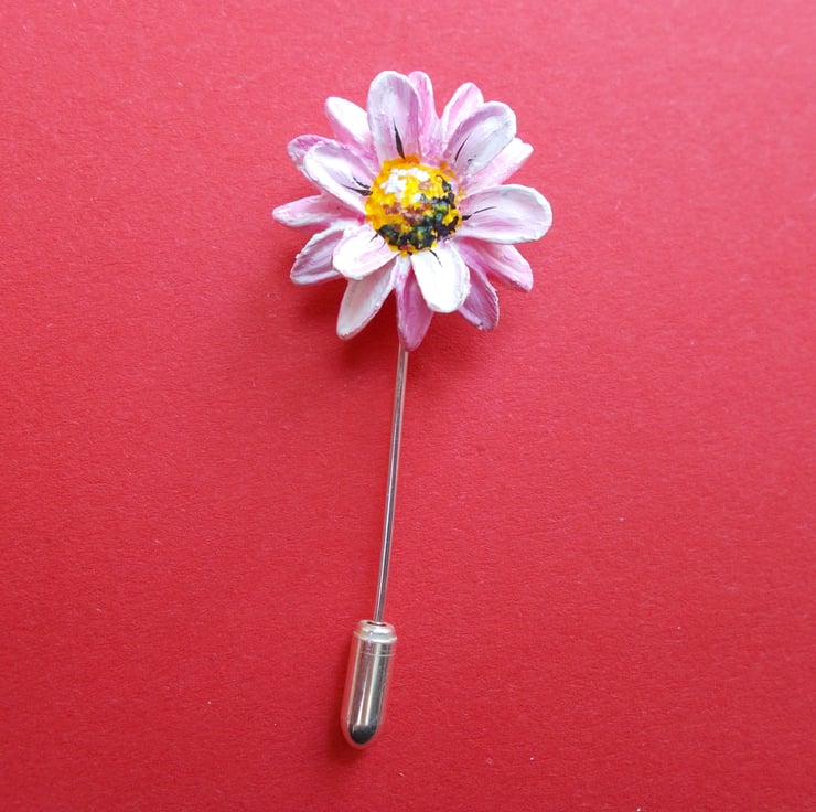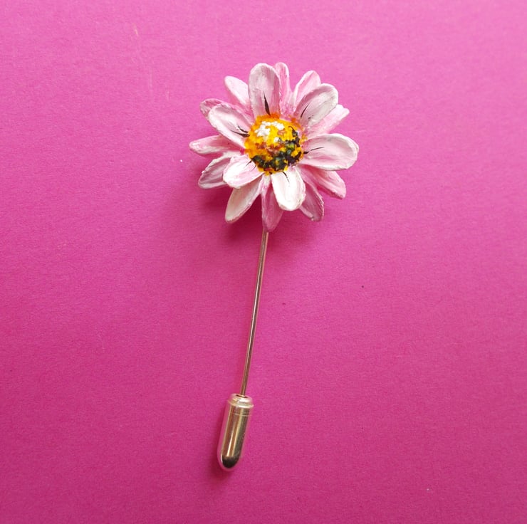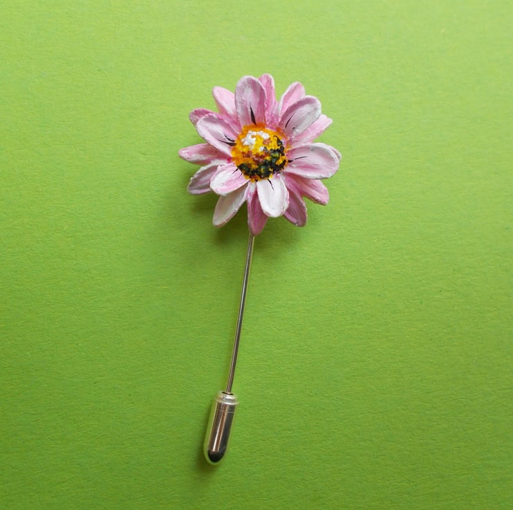 THE Single PASTEL PINK DAISY STICK PIN, Lapel Flower Pin.