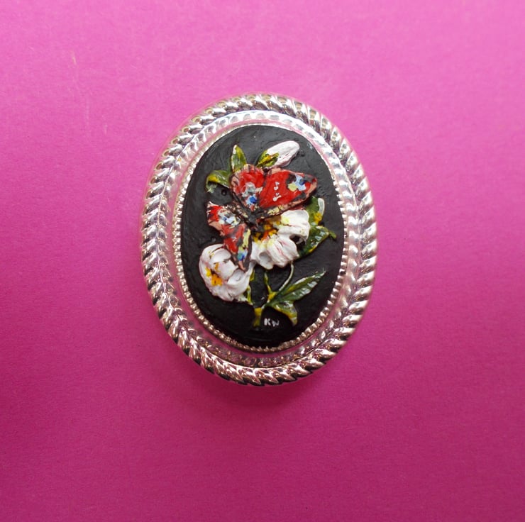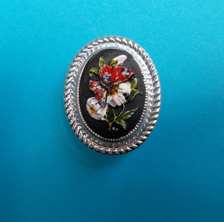 Exquisite, realistic detail beautifully hand painted. NOTE- this brooch looks stunning on black!