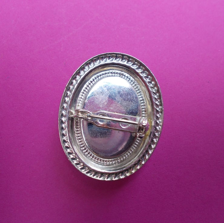 Silver Plated Brooch Frame-Size-3.5 cm ( 1 1/2 inches).... Washable.