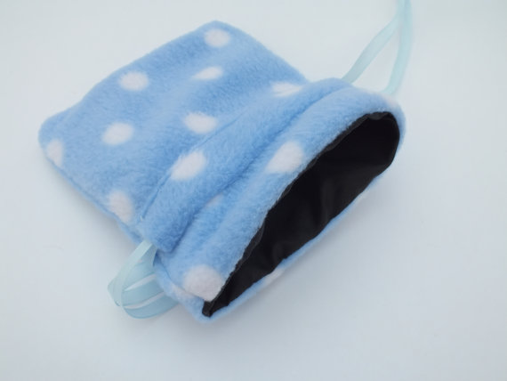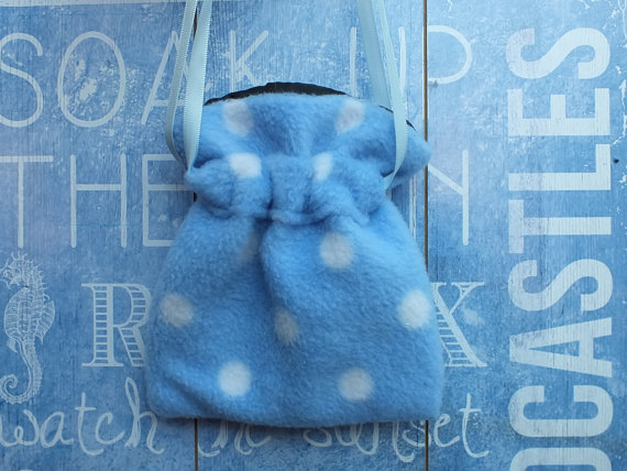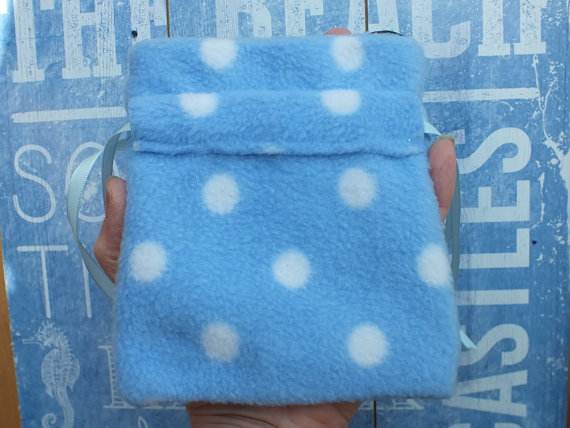Fleece Pouch cosmetic Make Up, Polka Dots, secret Santa gift, blue makeup bag,