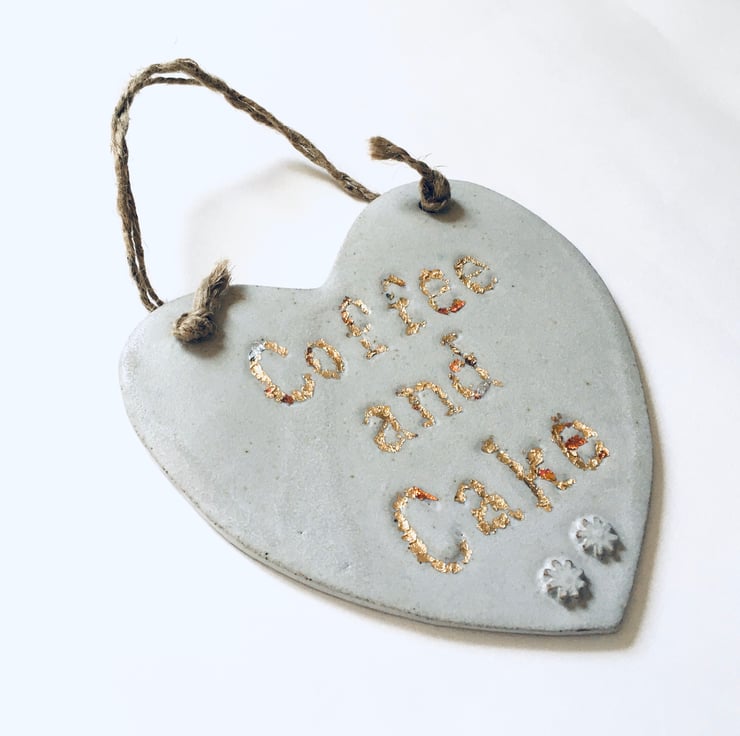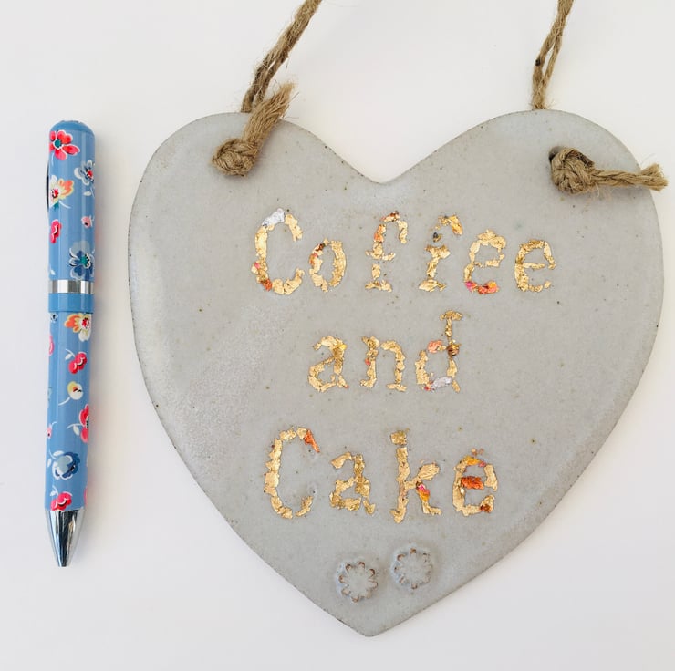 Hand made in Yorkshire, Novelty ceramic hanging board. The wording on this board is 'coffee and cake'.