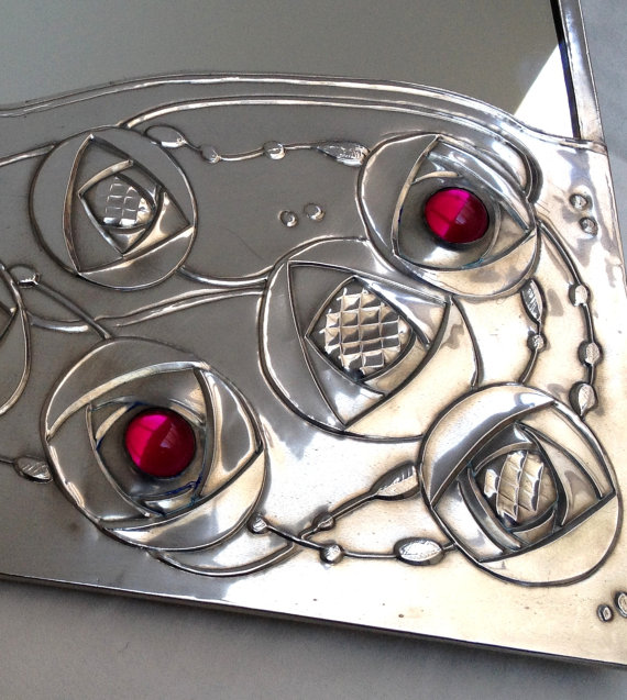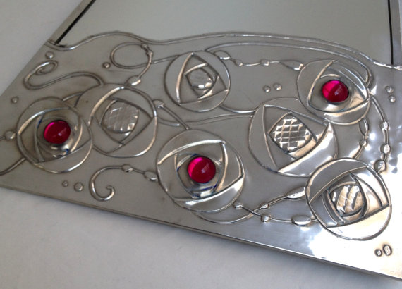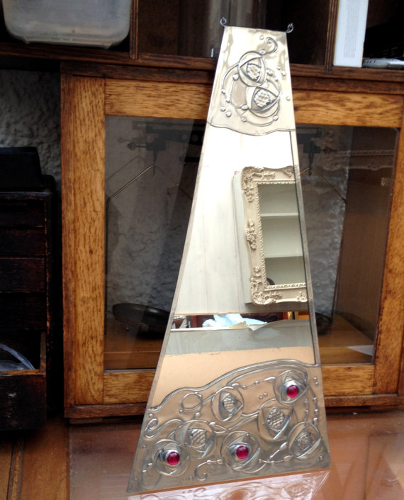 The mirror in the picture has red stones set into the metal, I can also make with blue, turquoise, purple orange and green ...........let me know your colour choice at checkout.