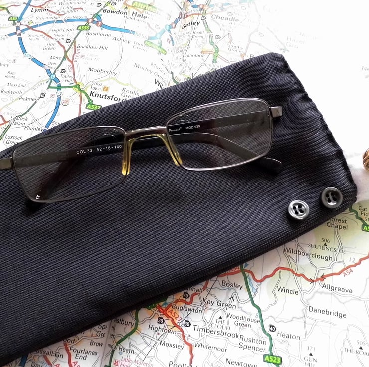 My husband mostly keeps his glasses in the usual drawstring plain bags and I started to play around with ideas to make something more unusual. Hope that you think so too.