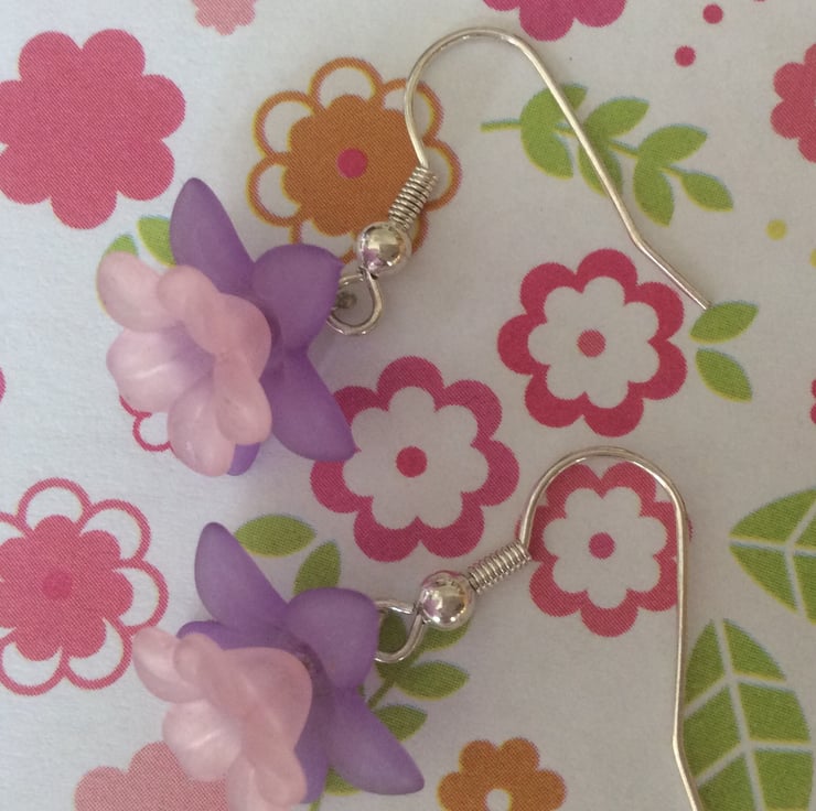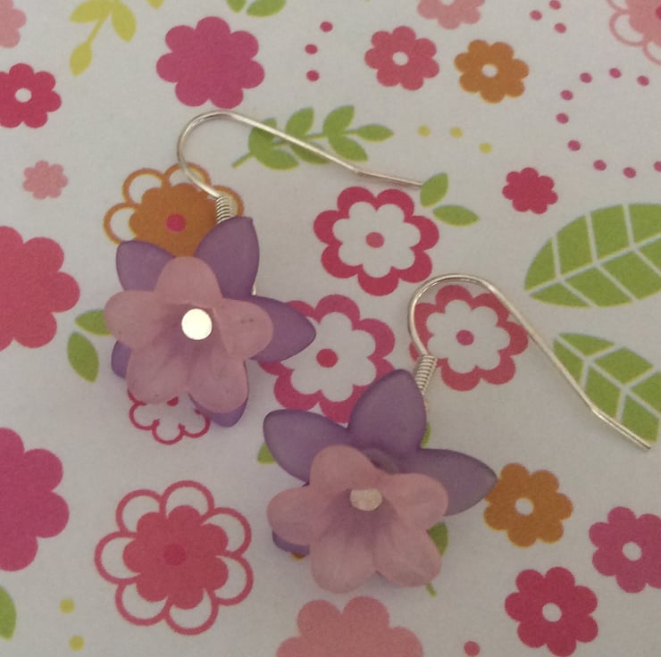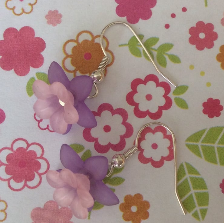 Made using a lilac and pink flower bead attached to silver plated ear wires.
